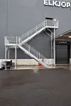 q-dekker båret av gitterdragere. Trapper og kjørebru til ander etasje med