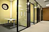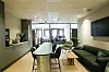malt gips på overflater, i kombinasjon med systemvegger i kontorområdene. I tak