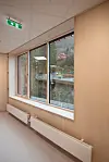 lydabsorbenter på vegger og i himling. Bygget er fullsprinklet. Solavskjerming