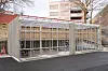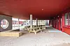 lektet trekledning. I gangbrua som forbinder de to byggene er det enkeltstående