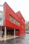 musikkrom. De to byggene er forbundet med en gangbru.