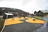 ballbinge, lekeapparater, klatrevegg, trampoline, rampeball og vannlek. Skole