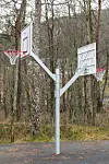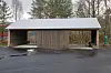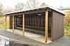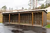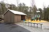 lekeapparater, sykkelstativ og flere åpne bygg som gir beskyttelse mot været.