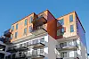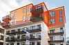 tekket med folie. Fasadene har Sto-puss, Sto-plater, oransje platekledning og