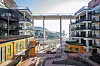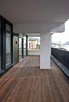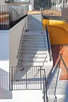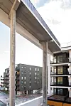 sjuende etasje. Den 20 meter høye gangbrua i front av byggene er også
