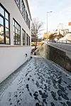 del av kjelleren er støpt vanntett. Den 20 meter lange gangbrua i front av