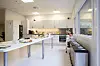 møterom, kantine, kjøkken, garderobe og toaletter. Det et vannbåren varme i
