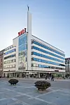 ligger) og har 300 medarbeidere i bygget. I første etasje holder butikkene