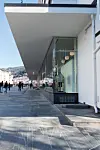 på langsiden mot Torgallmenningen og en mot Ole Bulls Plass. PwC har egen