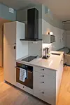 cirka 43 kvadratmeter og inneholder soverom, stue, kjøkken og bad.