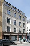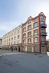 uttrykk. Fasaden i første etasje ble gitt et mer moderne uttrykk som ivaretok