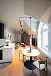 den nye bruken, men som hentet dimensjoner og materialbruk fra etasjene over.