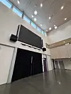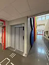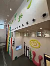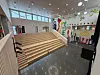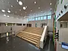 hovedinngangen som leder rett i amfiet til skolen, eller «Hjertet». Bygget er
