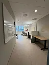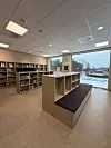bibliotek. Det er også et kontor for helsesykepleier i skolen.
