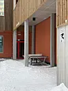 stedet. Skolen er kledd med jernvitrolbehandlet malmfuru, som er