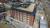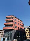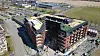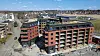 seks etasjer med bolig og næring, pluss en stor felles takterrasse og en
