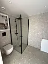 stålstendere og gips. Det er også benyttet baderomskabiner. Taket er tekket med