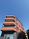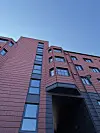 fasaden har en rødlig farge, men det er også flere fargenyanser. I tillegg er