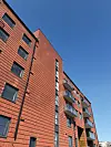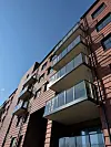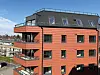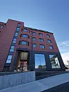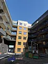 leiligheter fordelt på et hesteskoformet bygg med fire oppganger. Bygget er på