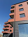 det benyttet royalimpregnert tre i deler av fasaden inne i bakgården samt at