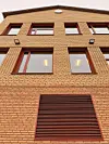 Wienerberger, som matcher steinen i eksisterende bygg. Det er valgt gul teglstein i øverste del av