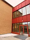 av eksisterende skole på 6.000 kvadratmeter, og et nytt tilbygg på 10.000