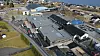 til det ene huset har blitt gjenbrukt som fundament på avfallshåndteringen.