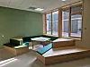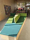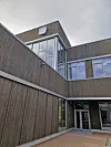 som går over to etasjer. Rundt dette amfiet er det bibliotek, lekserom,