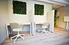 med solsenger og dyrkekasser, samt med utekjøkken for grill og fest.