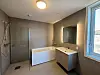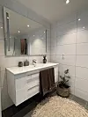 Badene er ferdige kabiner med vannbåren gulvvarme. Alle