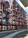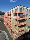 innfesting av kledning og ferdig montasje av balkongsverd. Balkongene med