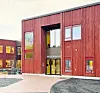 undervisningsarealene er organisert i en toetasjes fløy. Hovedinngangen leder
