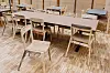 unike spilevegger, bord og stoler av lokalt gjenbruksmateriale, fast innredning