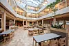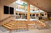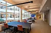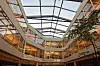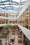 i et atrium med glasstak. Mellom personalrestauranten og hovedinngangen i