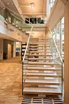 gulvet i lobby, askeparkett i kantine, sosiale soner og trapper. I