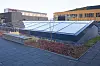 er basert på fjernvarme. Halve taket har solceller, som bidrar til produksjon