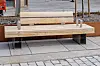 eksponerte tresøyler på utsiden mot hovedplass og sjøkant i vest, sier