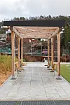 tak i treverk, her har en god skjerming, både til sykkel, lek og det å bare