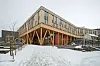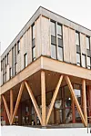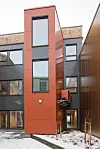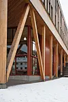 utstrakt bruk av tre i massivtrekonstruksjoner og som fasademateriale både i