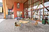 besøkende inn i et luftig og hyggelig fellesområde, skolen sitt hjerte, med