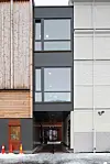 i form av alufasader. De øverste to etasjer utformes som en treboks som krager