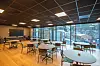 glass. I kontordelen er det systemhimlinger med mørke plater. Ellers i bygget