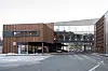 er utført med pulttak. Fasaden på mellombygget blir dominert av store glassfelt