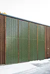 med innslag av panel av grønnlakkert aluminium.